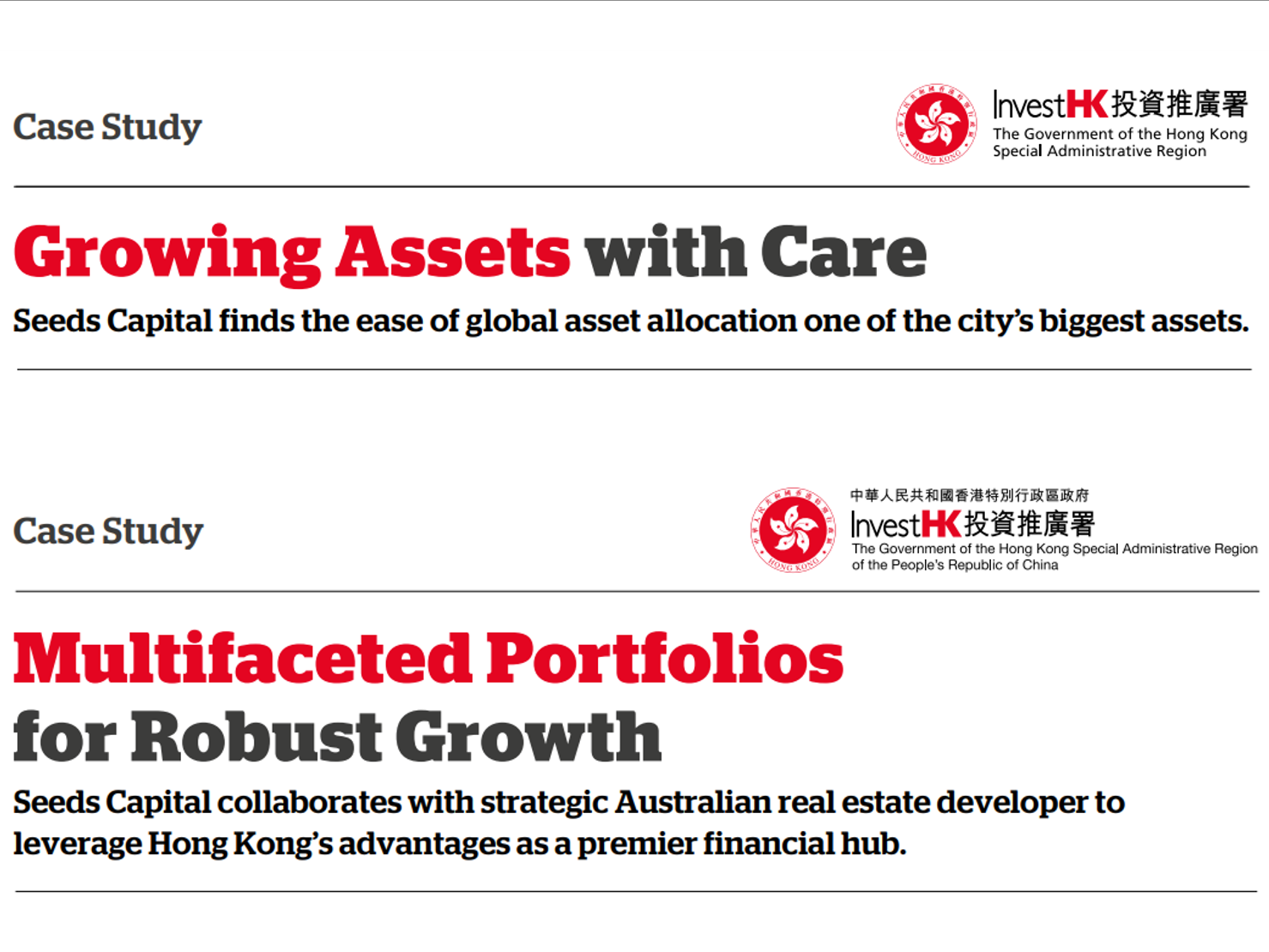 种子资本经过深耕细作,成为少数获政府投资推广署邀请进行专题采访的独立资产管理公司,以深入了解种子资本的理念及最新业务情况。相关两次专题采访项目亦先后于政府投资推广署官方网站中刊登。